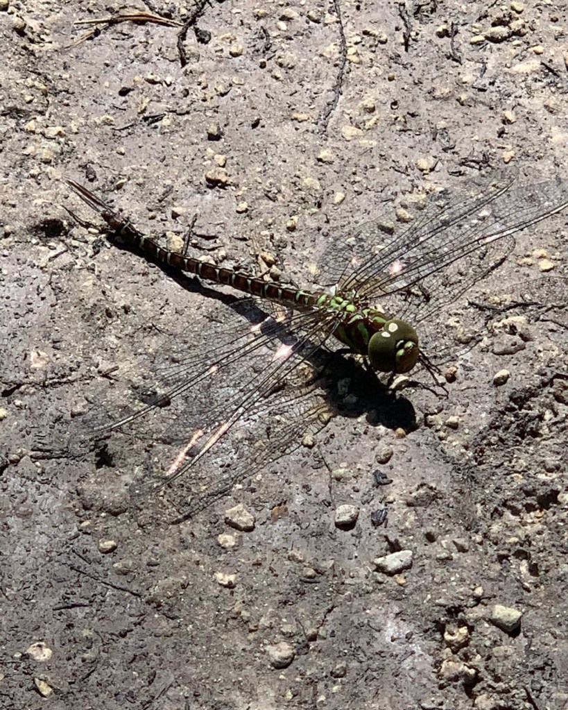A giant dragonfly also feeds off the mud